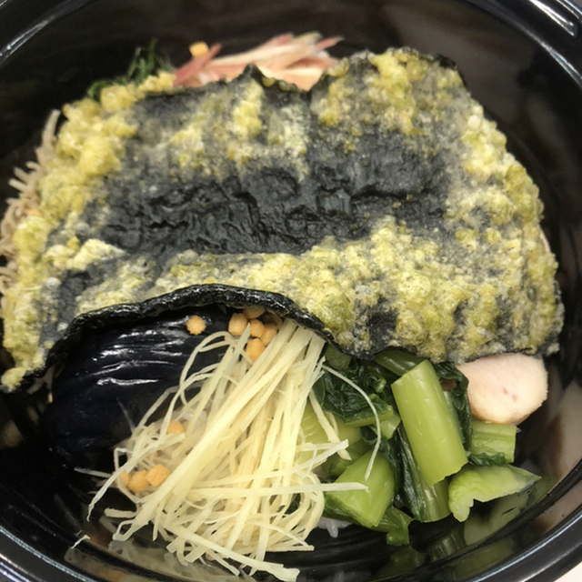 破れ方が高級。多分いい海苔。ただ海苔の味がわかるほど舌が肥えてない。謎に弁当底にも海苔が敷いてあるのは面白い!是非体験して欲しい。なんでここ?って思いを