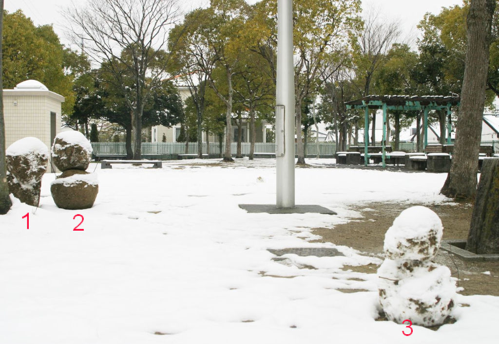 公園には、雪だるま ならぬ 泥だるま のお客様、3体 ![]()