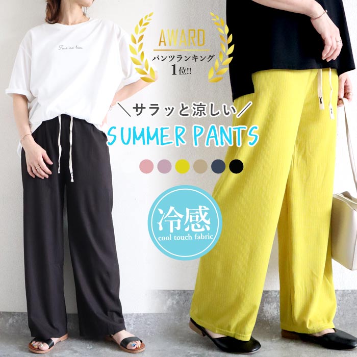 【26H限定!3点60%OFF!2点半額!】 【1990円!クーポンで!】 パンツ レディース 夏 涼しい 麻タッチ セミ ワイドパンツ ボトムス ストレート ゆったり ウエストゴム 楽ちん 涼しい 春 夏 大きめ シンプル ポケット 韓国 トレンド(送料無料)[郵2]^b458^楽天市場${EVENT_LABEL_01_TEXT}