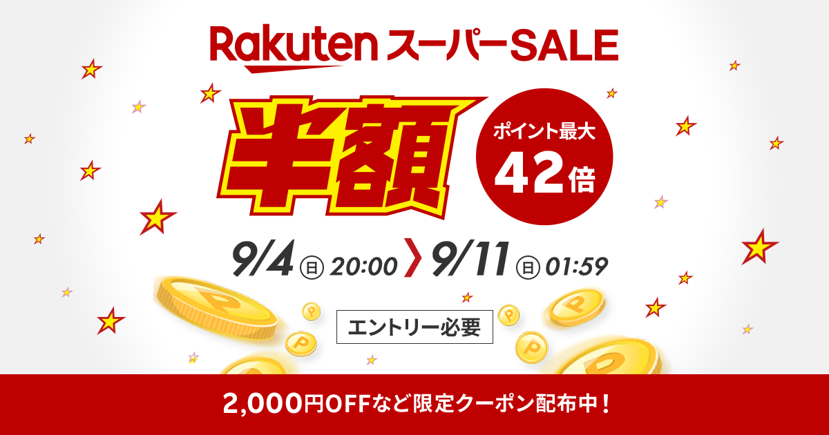 年4回の楽天スーパーSALE開催!9月4日~11日まで!