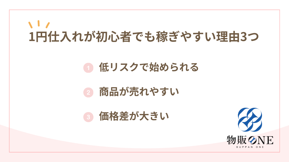 1円仕入れが初心者でも稼ぎやすい理由3つ