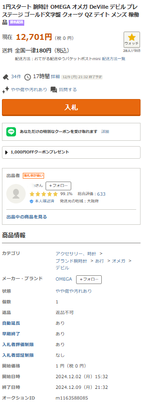 また以下のように、ヤフオクのプラットフォームが使いやすいのも、商品が売れやすい理由の一つです。