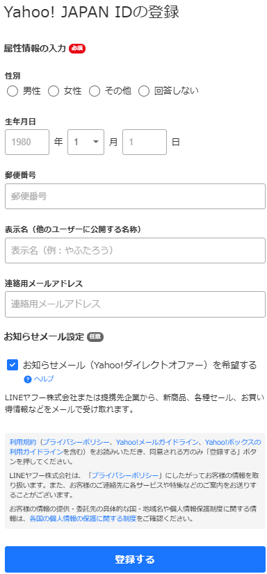 ステップ①:ヤフーアカウントの作成