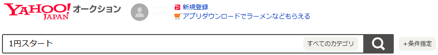 ヤフオクにアクセスし、検索(キーワード)欄に「1円スタート」と入力。
