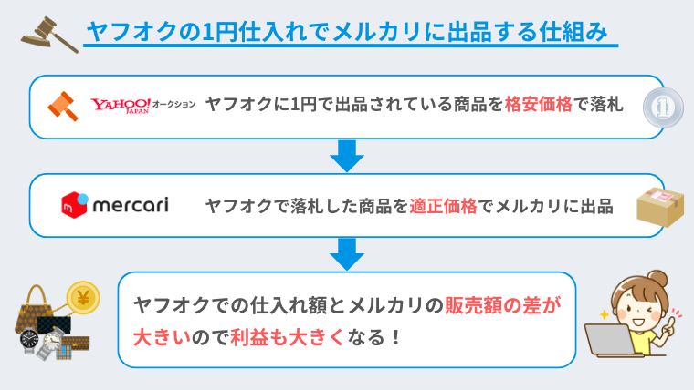 仕組み①ヤフオクを利用して商品を1円で仕入れる