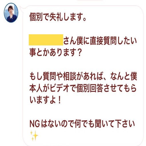 LINEメッセージでは、森谷氏本人が「質問があればビデオで個別にお答えします」と案内しており、気軽に相談できる空気感が伝わってきました。