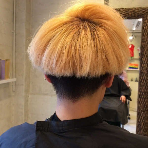 全体をここまでブリーチしたのは初めてで、途中経過の状態で少しビビる(笑)