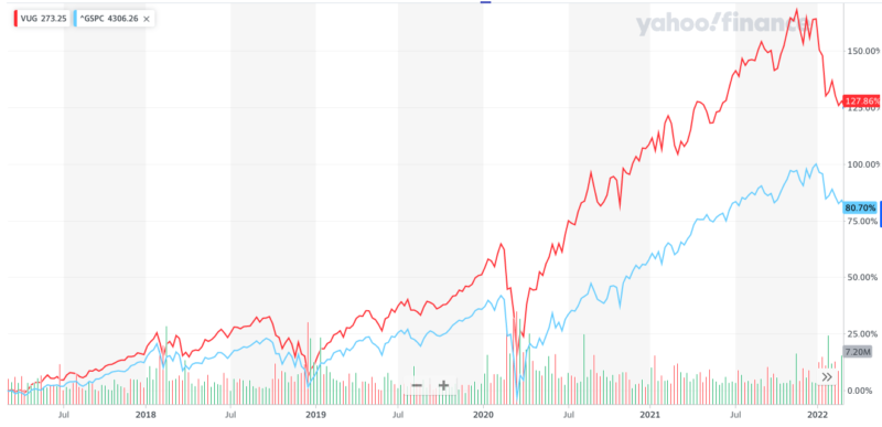 赤:グロース銘柄ETF 水色:S&P500