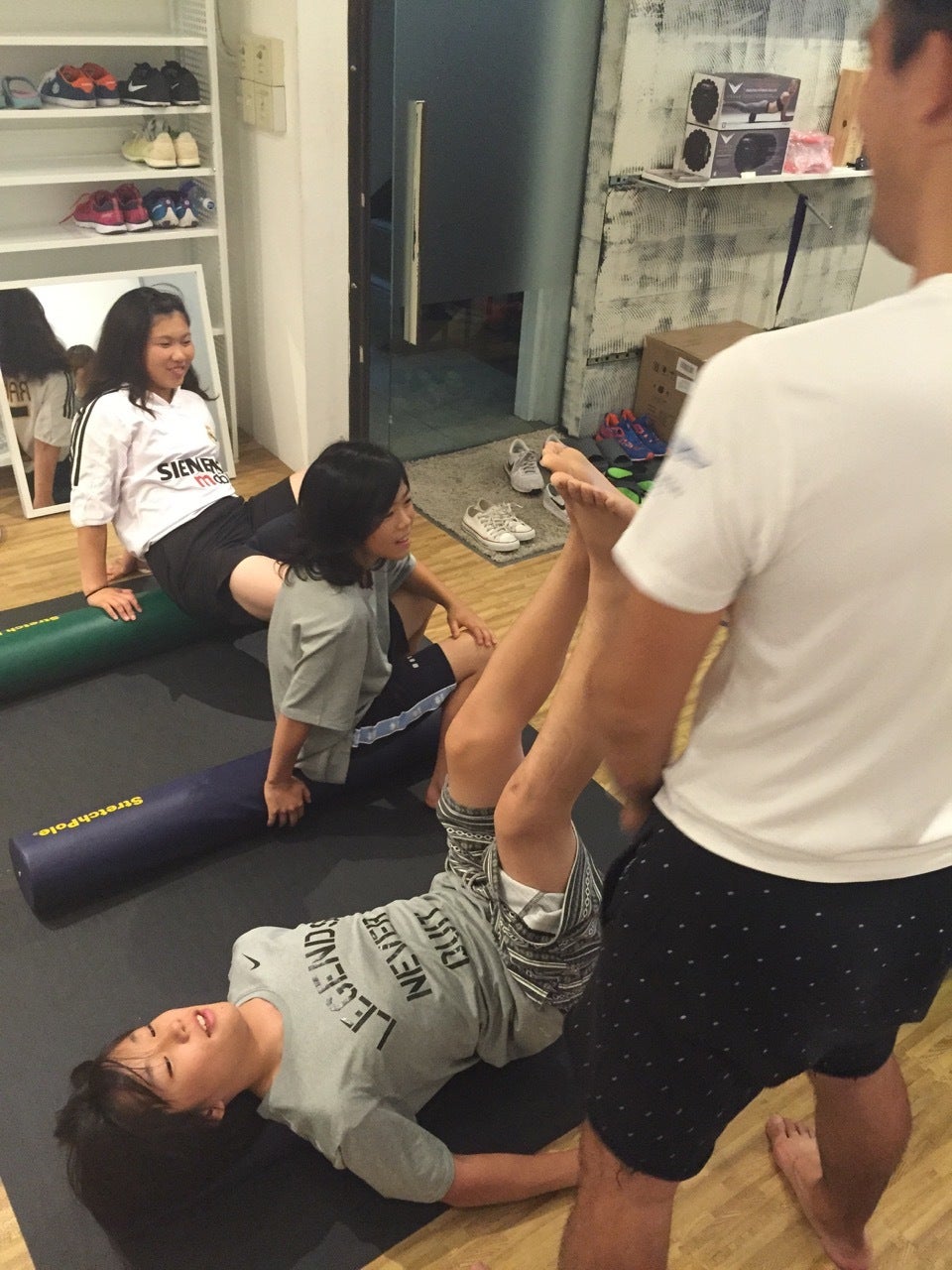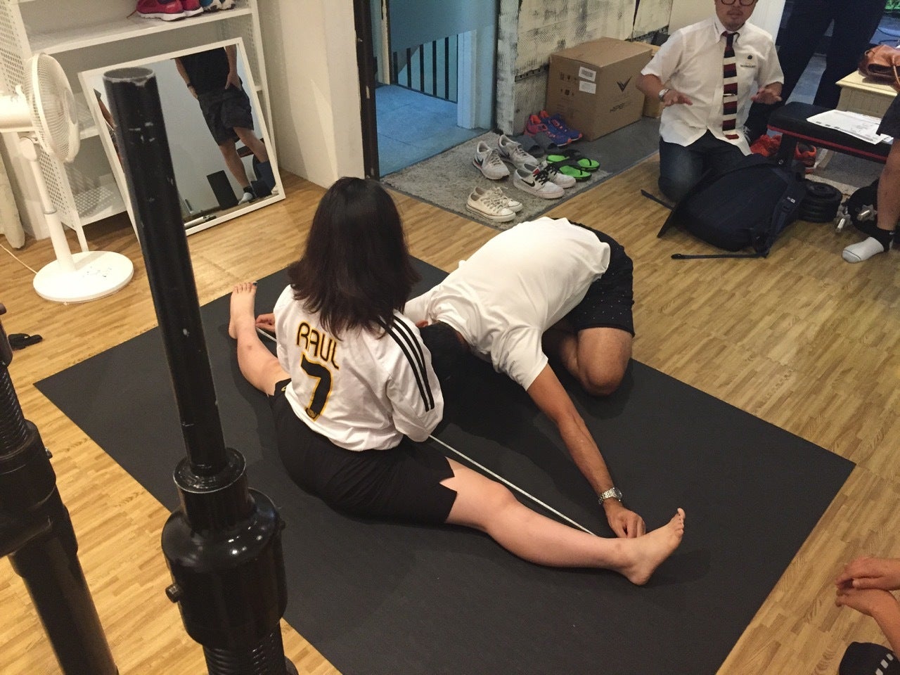 主に体幹強化のトレーニングメインで行い、さらに弱い部分の強化トレーニングをレクチャー