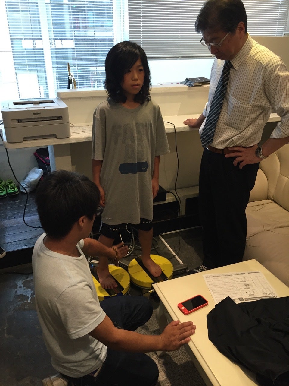 まず、STANCERを使用しての股関節の可動範囲や重心動揺など測定後、身体の細部測定をし、トレーニングスタート。