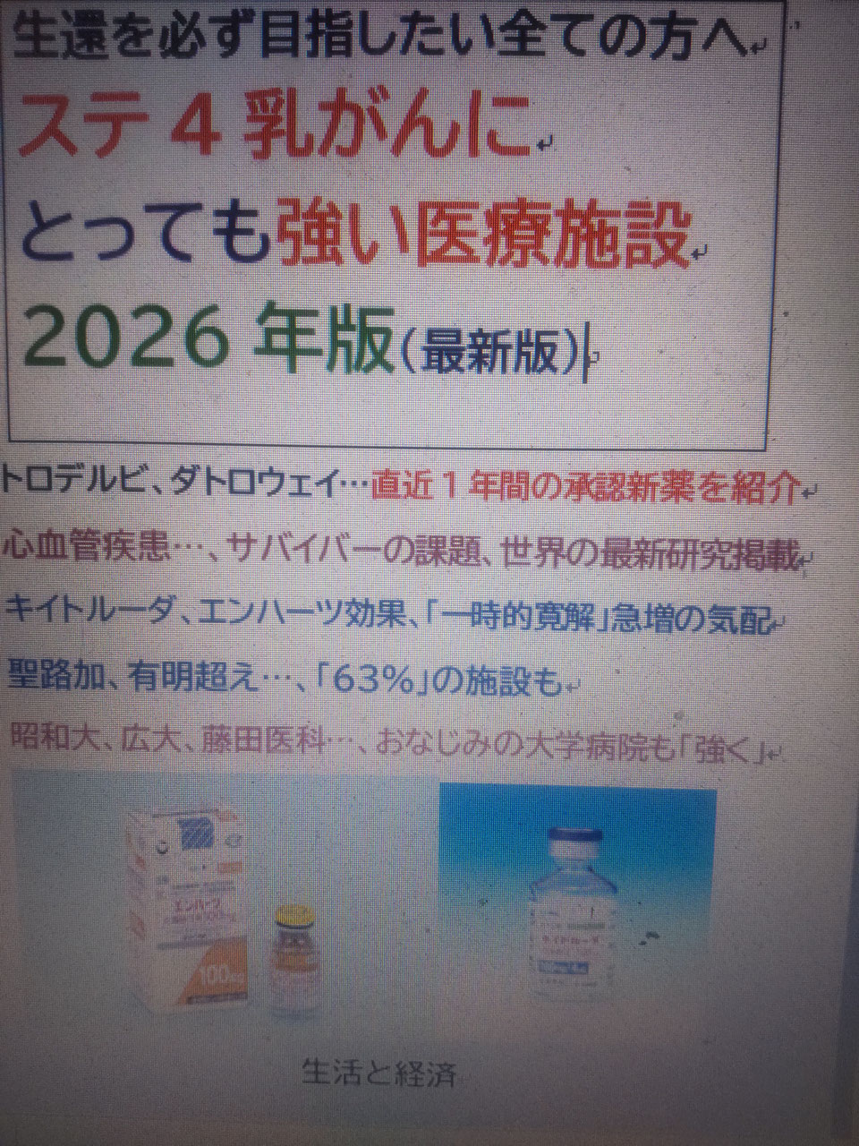 最新版「ステ4乳がんにとっても強い医療施設2026年版」のご検討、お申込みは下記小社HPまでお願いします。