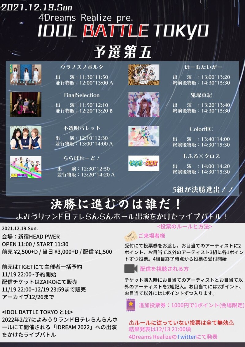 こちら、2022年2月27日によみうりランド日テレらんらんホールで開催される「IDREAM 2022」への出演をかけたバトル形式のライブになります!!!!!!