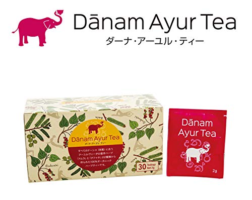 インドの近隣国であるスリランカの森林保護区に生息する希少ハーブ「グドゥチ」と、スーパーフルーツ「アムラ」をブレンドした「ダーナ・アーユルティー」の tea bag 2包もセットになっています。