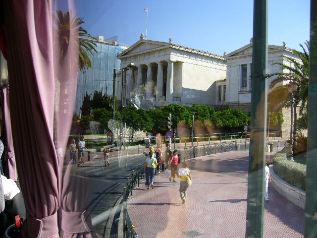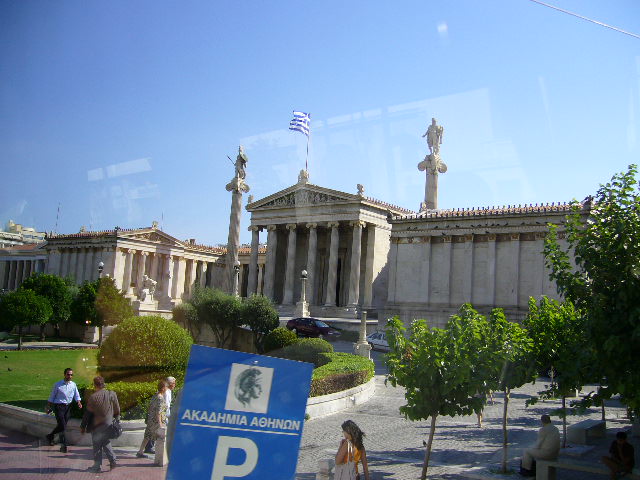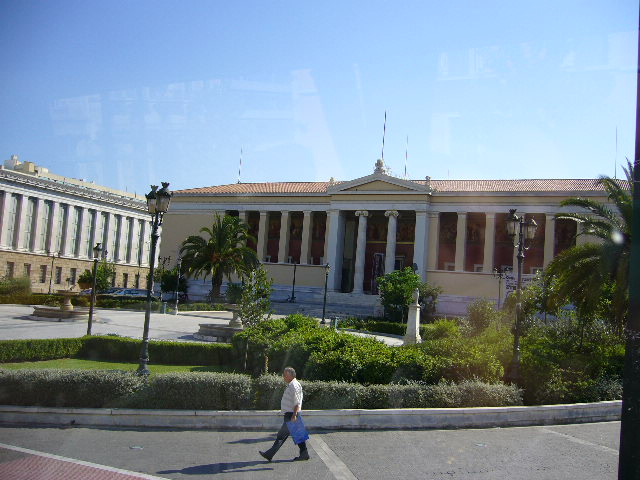 国立図書館。3つの建物ともデンマークの建築家、ハンセン兄弟の設計で19世紀に建てられたものです。世界遺産アクロポリスへ。