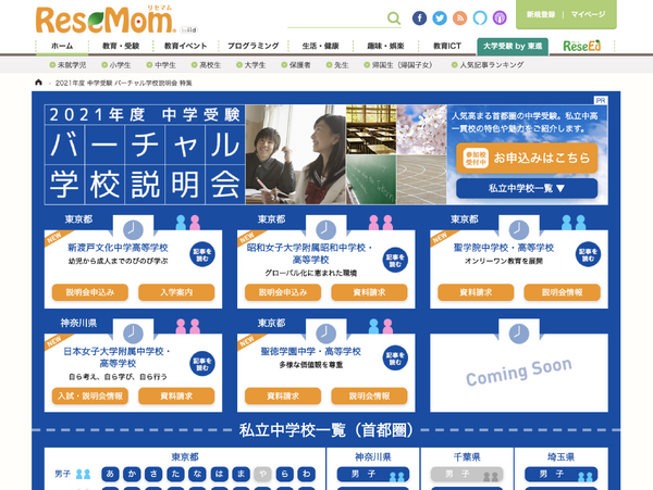コロナの影響で学校説明会がオンラインになっていたり、文化祭も中止になってしまう学校もあるかと思いますが、こちらで生の中高生の声や現役生が紹介されているのでとても勉強になりました。(愚息の受験期に知っていれば…オンライン家庭教師とか気になりました。)