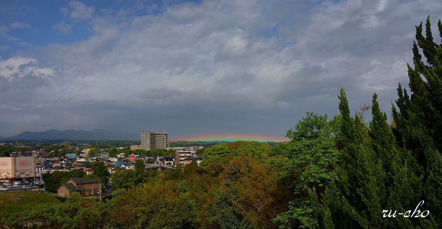 虹出現地点は不確定ですが、まるで山から虹がお出まし、そんな光景にも見えてしまいました。