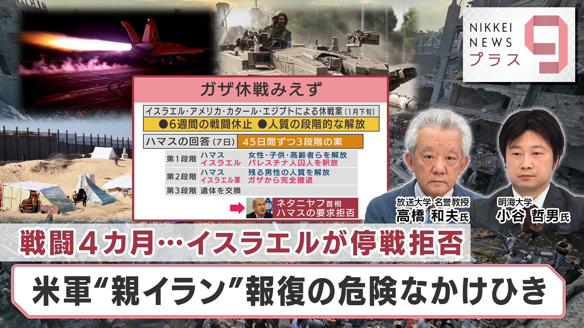 アメリカを揺さぶる中東情勢の行方 - 日経ニュース プラス9|ネットもテレ東【テレ東公式】2月8日(木) ▼戦闘休止と人質解放の今後は▼中東紛争へ、拡大する戦火?▼日経平均一時800円高、3万7,000円は…▼注目企業の決算発表、ソフトバンクGなど日経ニュース プラス9 日経記者がニュースを解説 マーケットもわかる!video.tv-tokyo.co.jp