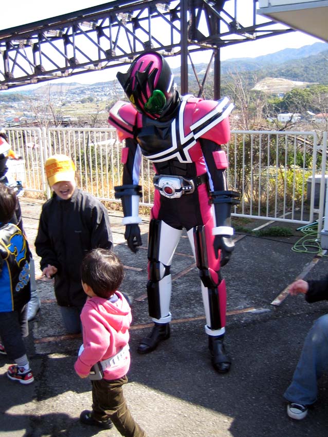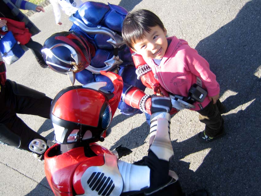 しかも仮面ライダーが10人、ぞろぞろと握手会の場所まで園内を散歩?しているので、結構、遊んでもらえた。