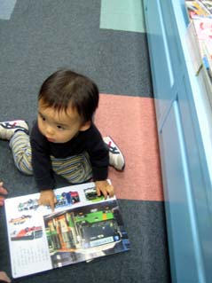 ばぁばが本を買ってくれると言うので選び中。大好きなバスの本を離さないので、レジに行けなくて困った
