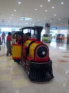 こんな汽車がショッピングモール内を走るというので、これが目的で行ったのだが、大して喜ばず…。でも周りの車の展示を見て絶叫していた。