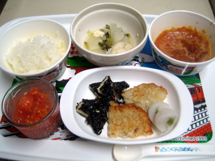するとさすがに、白ご飯を少し残しだけ残したところで、ギブギブ!とでも言いたげに自分から手を合わせて「ごちそうさま」をした。