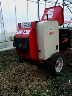 ブドウのハウスの中にあるブドウの木の剪定をもうすでに父がやりました。剪定して切った木の枝を片付けなくちゃいけないのです。母と二人で写真にある機械にかけて、粉々にする作業をやりました。