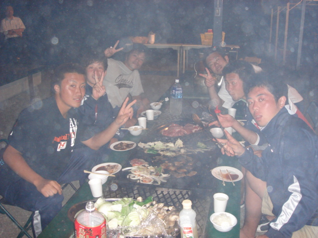全体合宿2日目 全体合宿2日目の今日は、タッチラグビーやリレーをやりました。 何チームかに分かれて競い合うので、チームのみんなと協力しないと勝てません。チームのみんなと協力してできたと思う。リレーで1位を取れたのは嬉しかったな~☆かなり疲れたけど。 そして明日で合宿も終わりということで、夜はバーベキューでした。酒はないけどね。 みんなでバーベキューは楽しいね♪ 明日も頑張ろ~!!