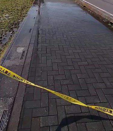 恐怖❗ 歩道に湧く水