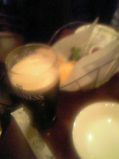 写真は、ボケてるけど、‘ギネス’&‘フィッシュ&チップス’です。