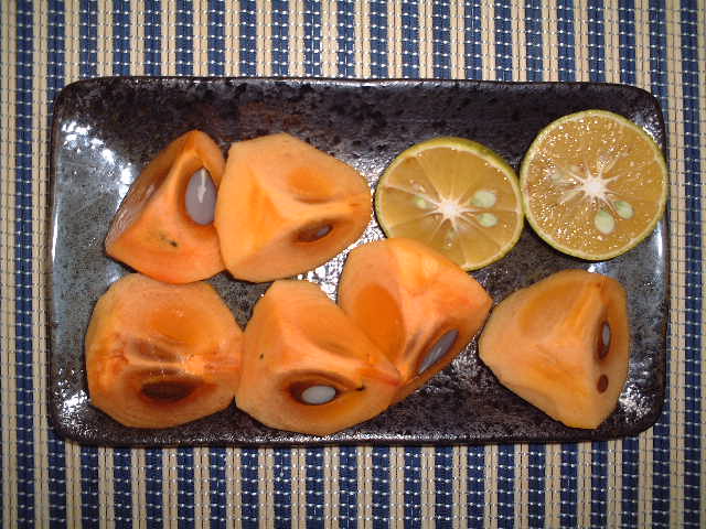 カボスを柿に絞って食べてみました。