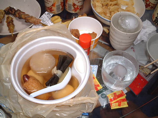 つまみは、おでんなど。なんか食い散らかしてる。