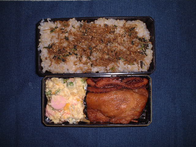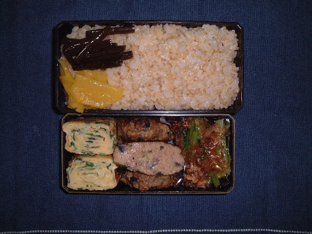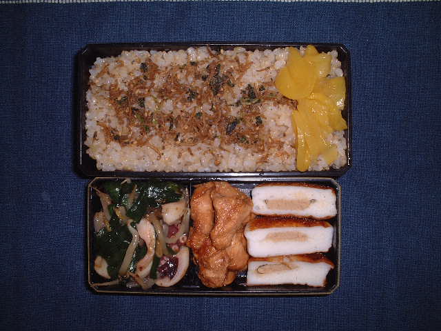 玄米ごはん+山椒ちりめんふりかけ+たくあん
