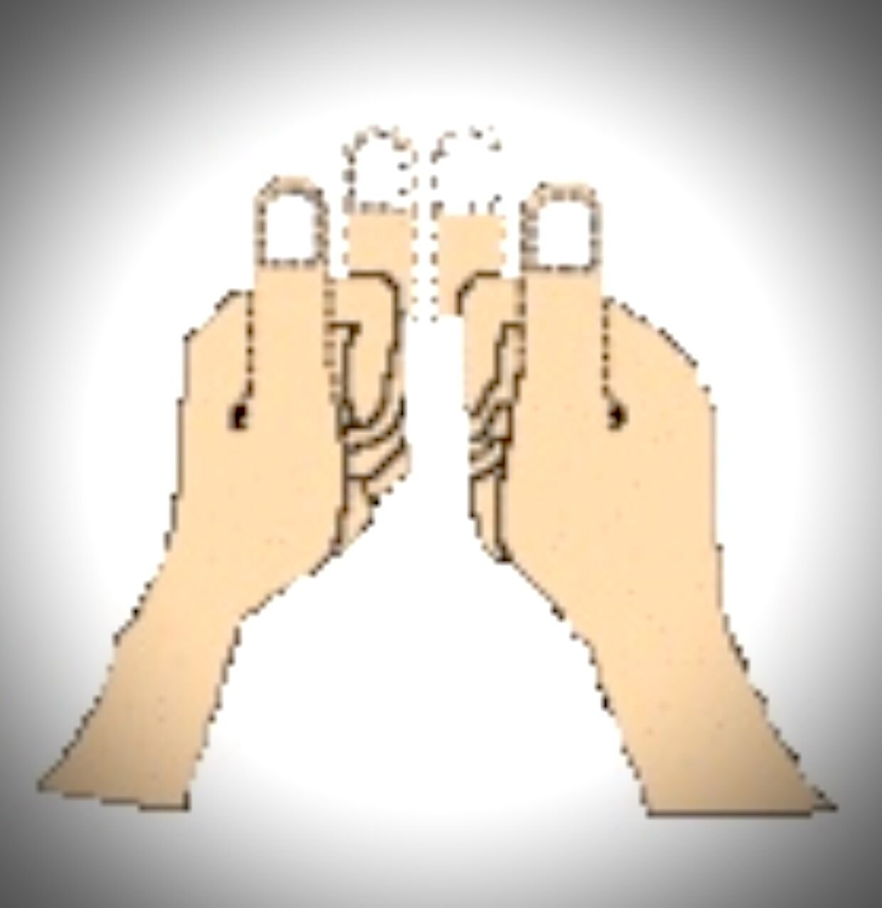 ②両手の手のひらを合わせ、18回くらいこすりあわせます。