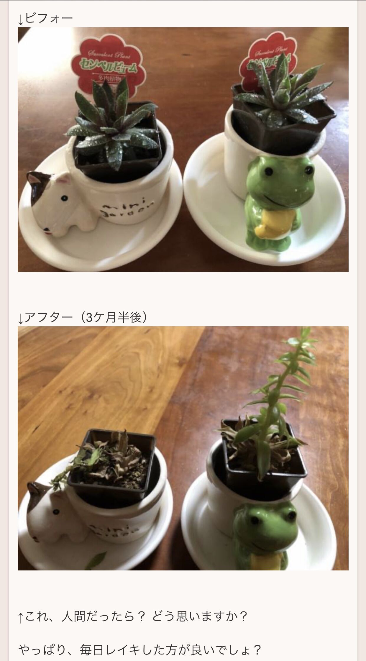 ↓ご参考に!『生か死か!?植物レイキ実験!? / 瀬織津姫さまセルフヒーリングの感想!』