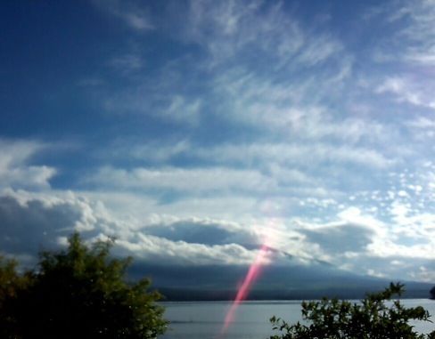 ↓富士山 山中湖 御神業にて。御神業で降ろした光の御柱。。。宇宙と繋がって御神業をすると、宇宙は、時たま、私たちがしたことを、目で見える形で現してくれるんです。応えてくれるんです。