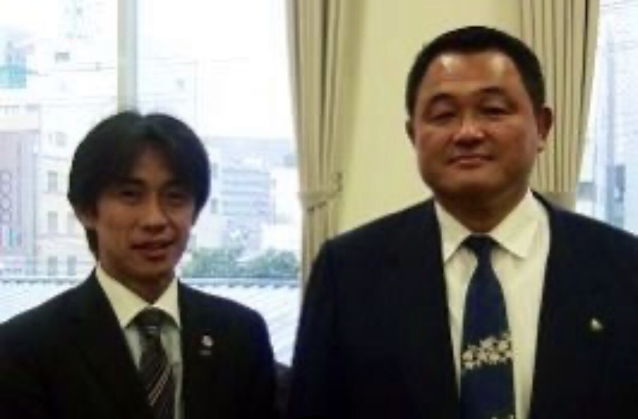 ↓山下泰裕さんと、農業関連事業の会社をしていた30代の時の私。