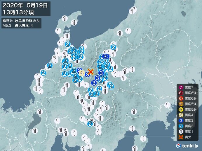 ↓M5.3 震度4の地震が起こった瞬間の13:13に、