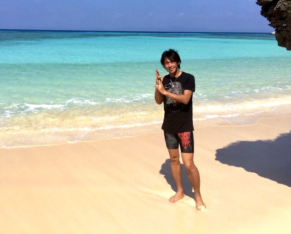 ↓美しい地球を、水を、いつまでも!波照間島にて。