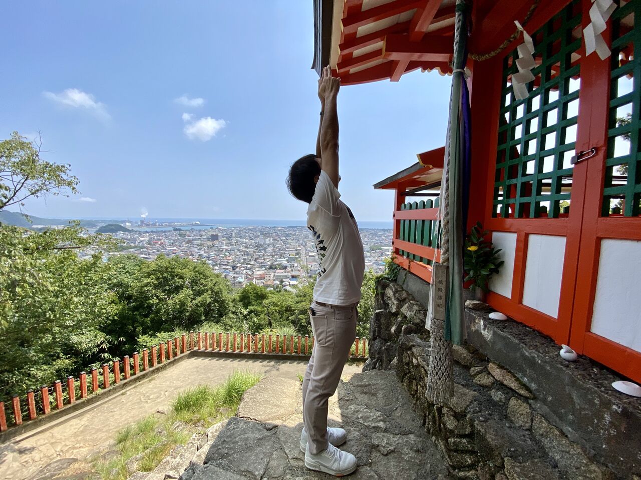 ↓神倉神社にて。"祈り"よ、世界中に届け〜!