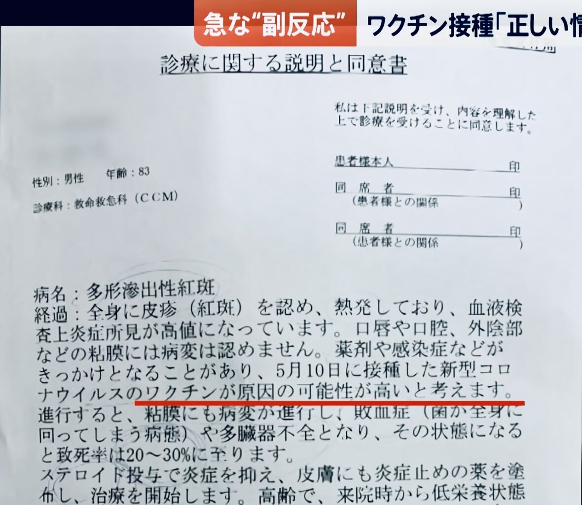 ↓テレビニュース動画概要(ワクチン副反応があった方の身内の方が出演。非常に理に適ったことを言われています)