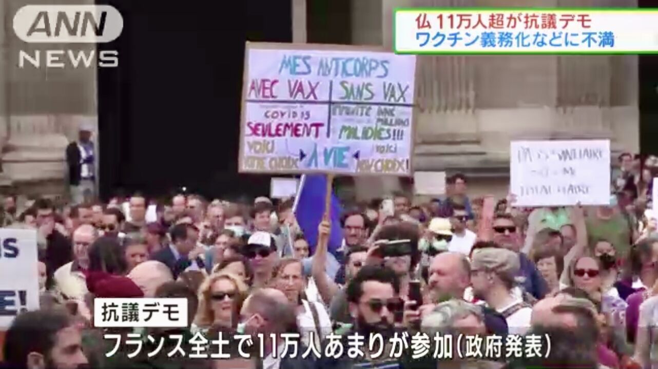 ↑フランス ワクチン義務化の反対デモ。デモを止める側の警察官もデモに加わり反対しているシーンがありましたが、もう警察官も黙ってられないほどに!↓