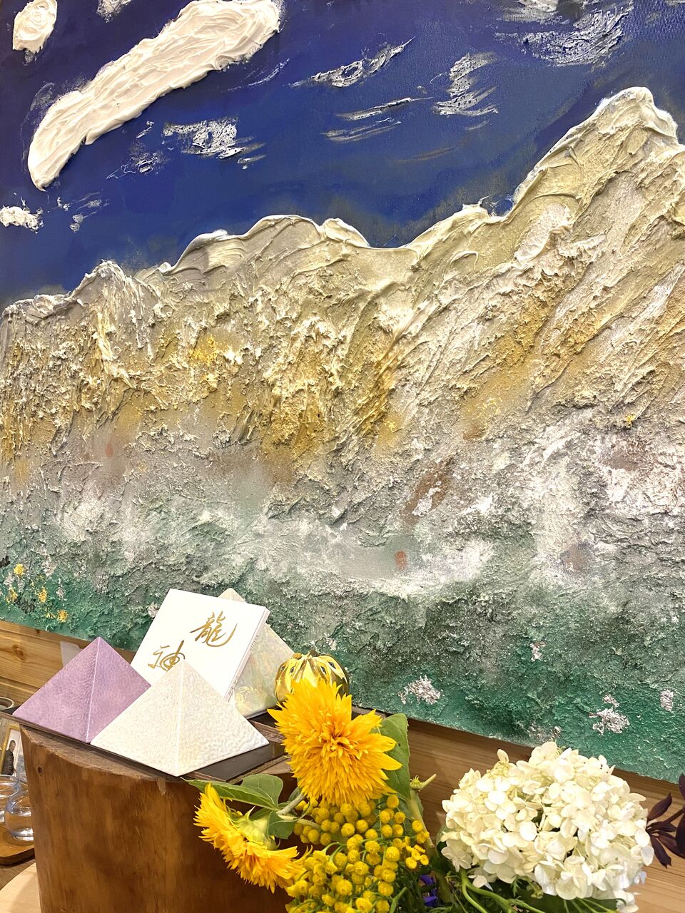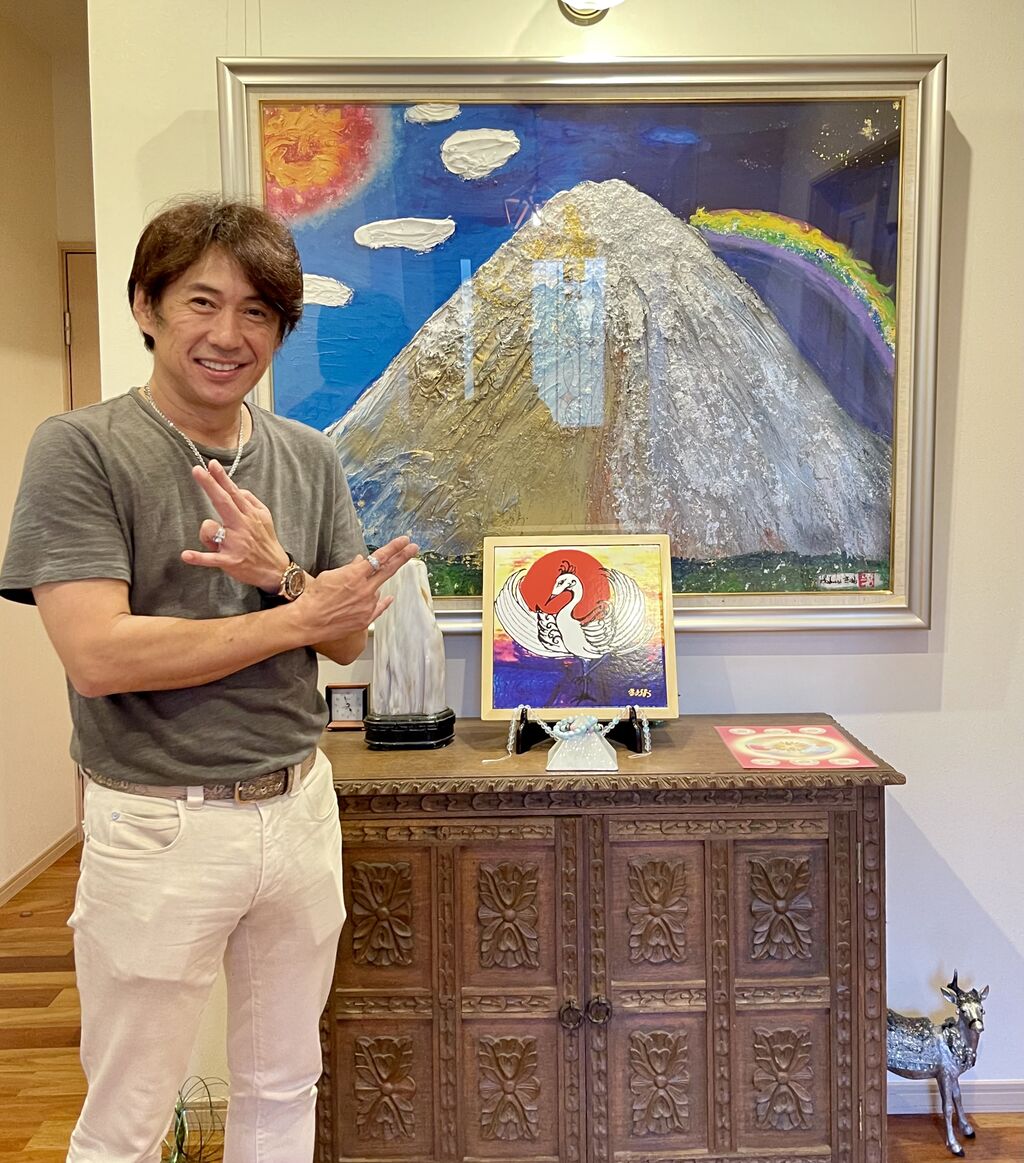 ↓昨日、櫻井喜美夫先生のご自宅にて、櫻井喜美夫先生の作品。富士山と虹色のコスモドラゴン。
