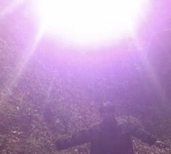 ↓「真の高千穂」と言われる聖地にて、「光の御柱」の高次元エネルギーを降ろしているところを、霊感の強い方に撮影していただいたもの。