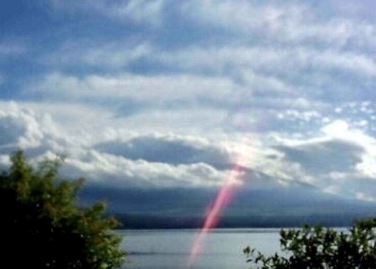 ↓山中湖 御神業 直後に写った「光の御柱」。