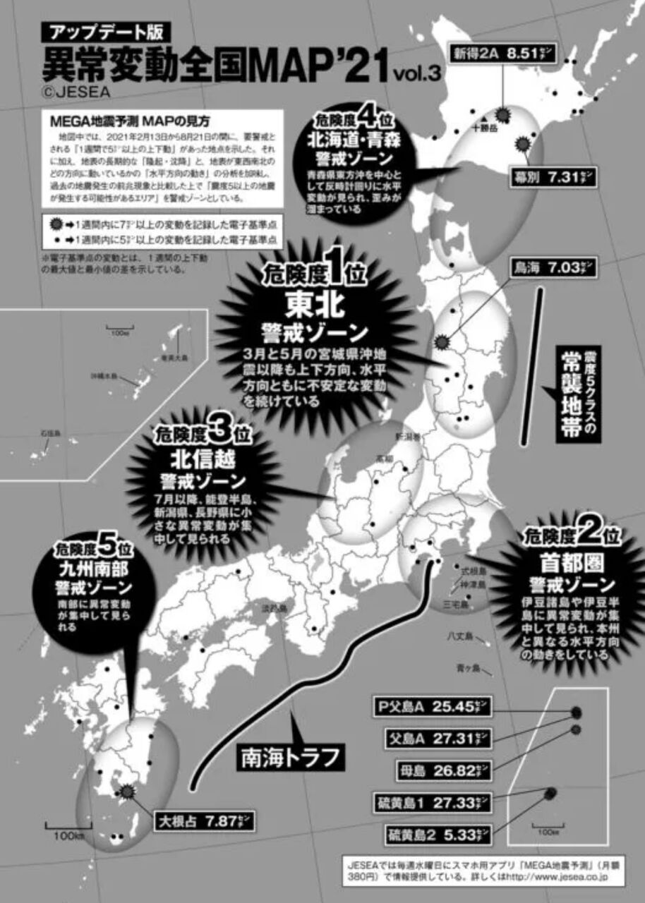 ↓20年前に作った未来の日本地図では、龍体した日本列島も隆起と沈下で形が変わり、龍からフェニックスの形になっています。