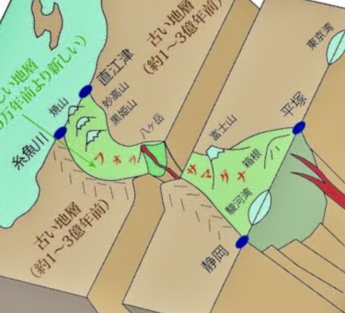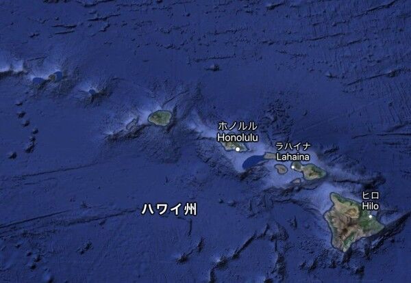 ↑ハワイの火山島と↓フォッサマグナの火山は配置が似てる。フォッサマグナに海水が入ってきたら、ハワイのようになる。
