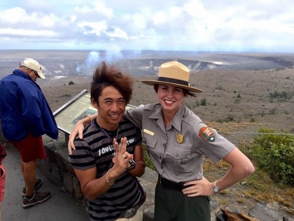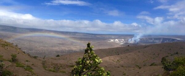 ↓キラウエア火山 御神業にて。クレーター内部の火口に光の御柱を降ろした直後、↓火口と同じ大きさの虹が出現!観光客も驚く!ガイドのお姉さんも珍しい現象と驚く!