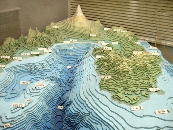 一方、富士山は駿河トラフの最深部(2800m)↑を含めると、