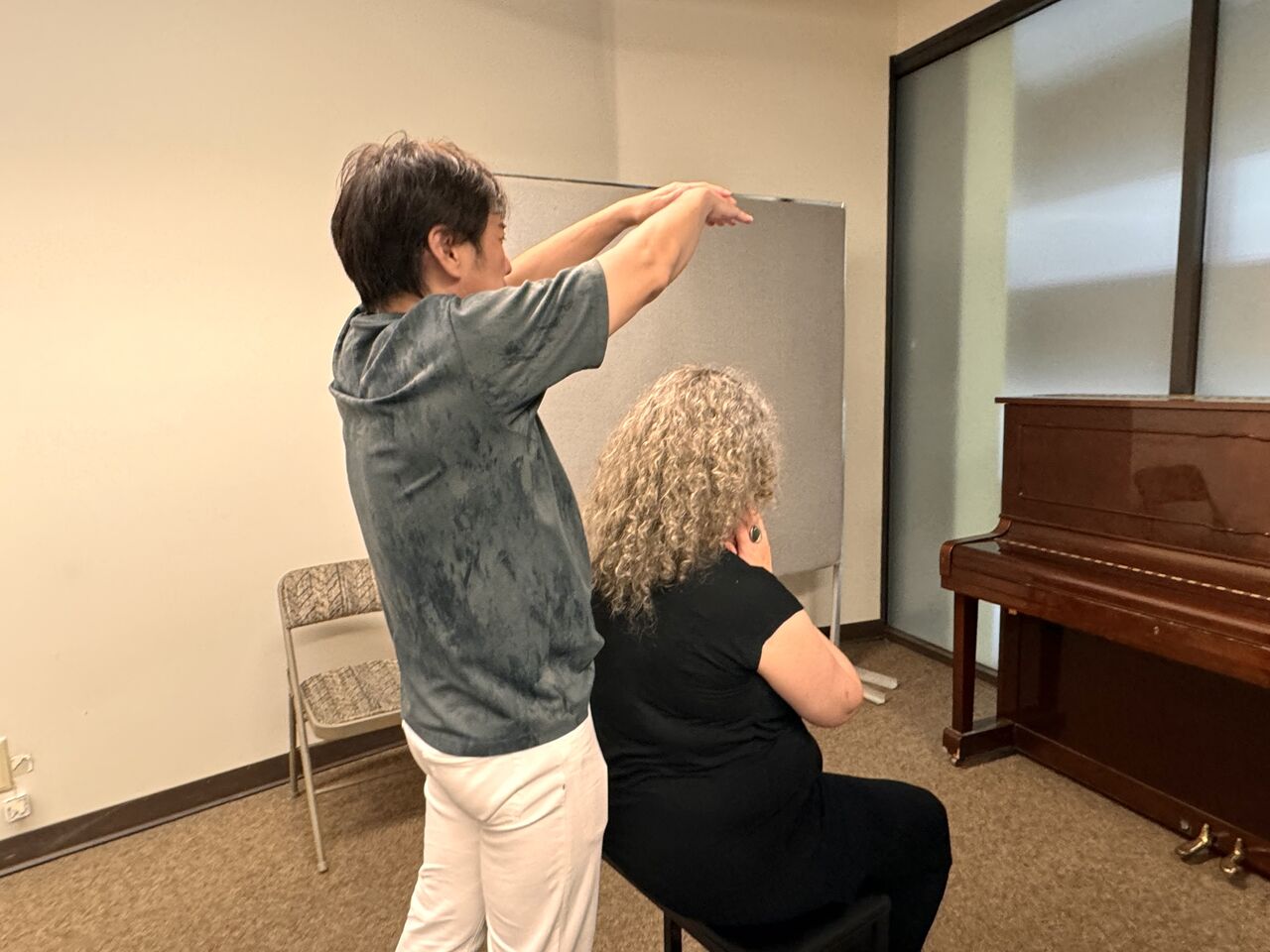↓左は、今回の会場となった 日系文化センターのコーディネーターのももこさん、右は田積ティーチャー。