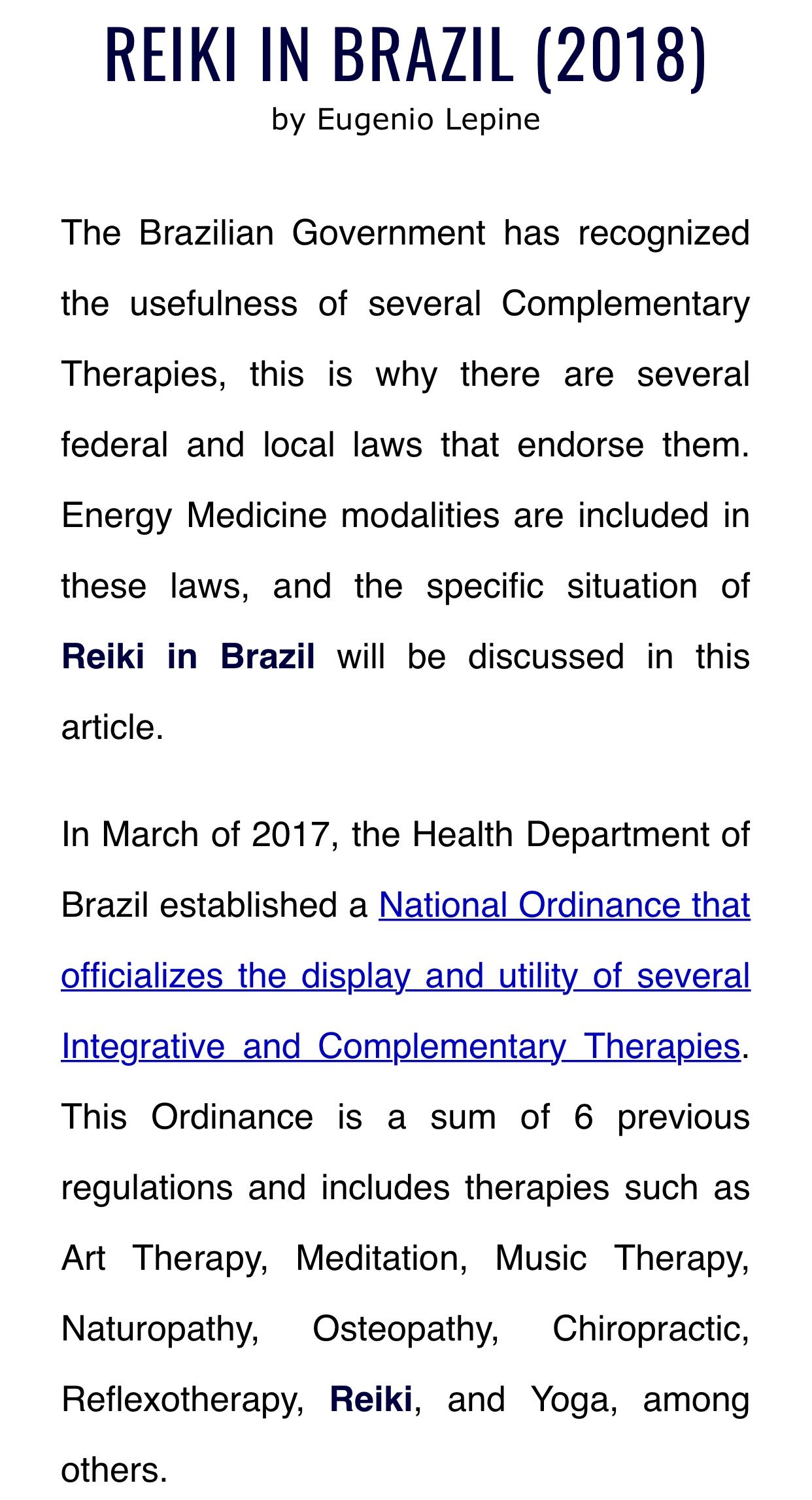 また、ブラジルではブラジル厚生省が『レイキ』を推奨しており、